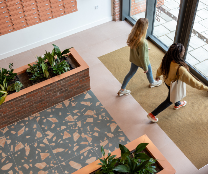 The communal corridors at our Sheepcote Road HA1 development have flooring containing ‘ghost nets’ – fishing nets that have been lost or discarded at sea and harm waters and wildlife. In this case, these have been retrieved and recycled into a durable recycled flooring material.