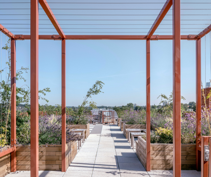 Additionally, landscaping and planting in gardens and on terraces contributes to the biodiversity of the local area and helps pollinators to thrive. Many of our schemes include bat boxes, which are designed to support bat conservation efforts, encouraging bats into areas where there are few roosting sites. We also provide allotment beds wherever we can, which help residents to connect with nature, grow their own produce and also contribute to furthering the biodiversity of the development.